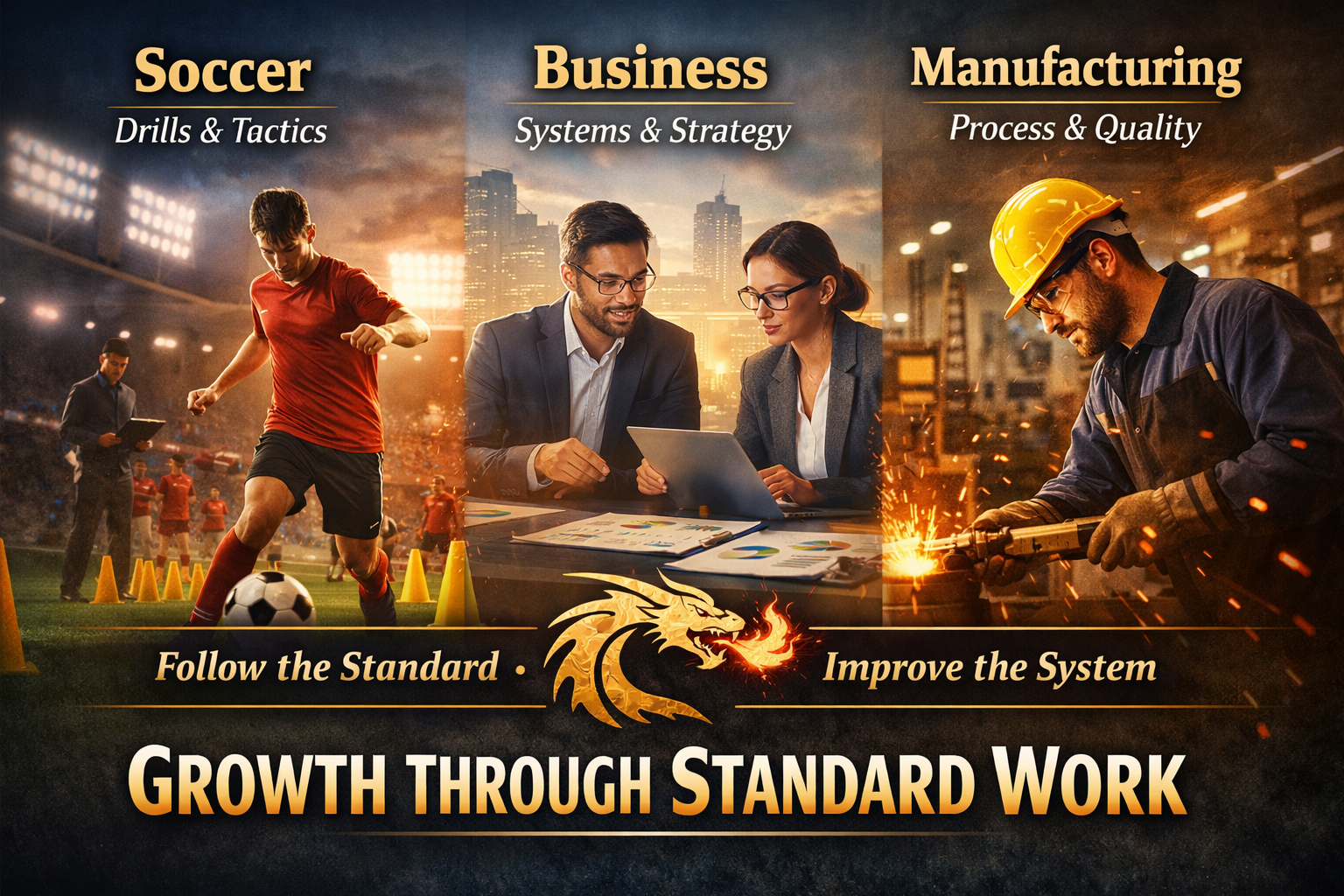 Across all three, soccer, business, and manufacturing, the principle is the same: